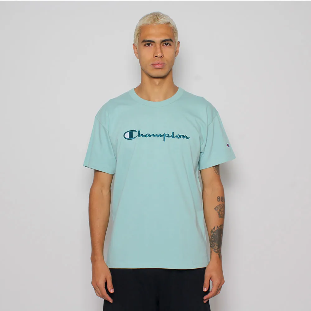 CAMISETA CHAMPION LIFE COLORS SCRIPT LOGO EMB NIMBUS GREEN